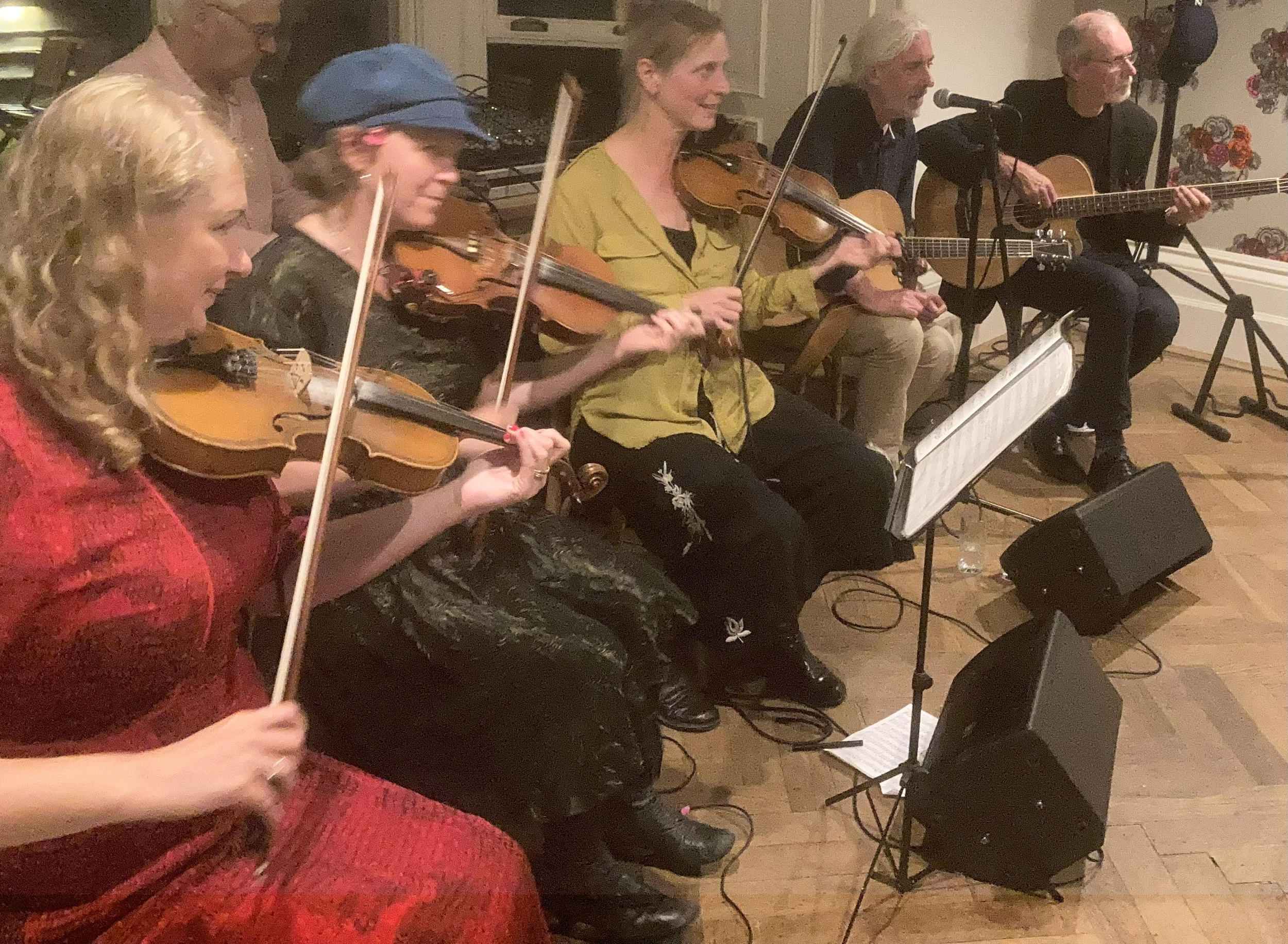 Fiddles have always been at the heart of the Bellas' sound, with many well-known players passing through the ranks over the band's thirty year history, including Mairi Campbell, Derek Hoy, Sarah-Jane Summers, and Annawendy Stevenson. The current line-up of fiddlers Sarah Hoy, Sarah McFadyen and Jenny Gardner continues the Bella tradition of a swingy, string-based sound underpinned by the acoustic guitar of Dave Francis and the acoustic bass of John Young. The band is delighted to be back at the Fiddle Festival with a great selection of tunes and dances. The band's dance repertoire includes many fun, lesser-known dances expertly talked through by caller, Dave Francis.